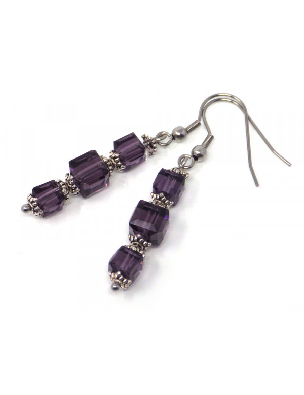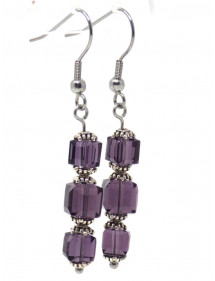 Lila Ohrringe aus Glas und Edelstahl