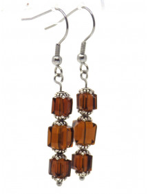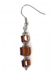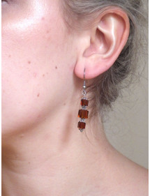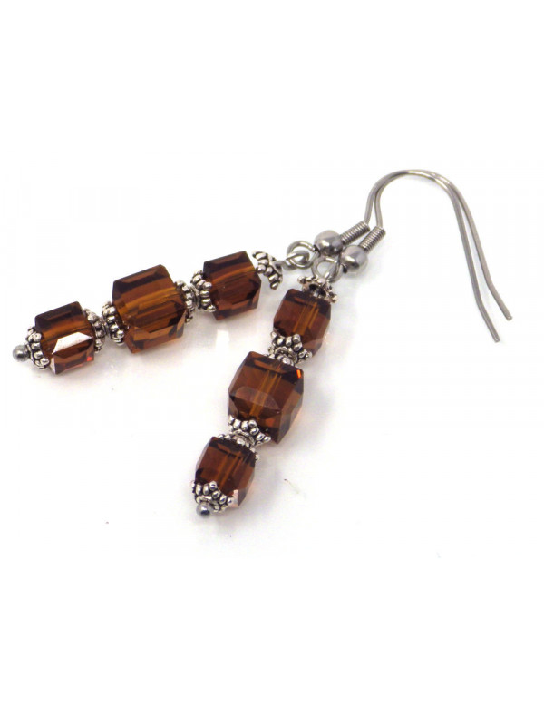 Braune Ohrringe in schickem Stil für elegante Frauen. Dieses edle Schmuckstück besteht aus quadratischen braunen Glasperlen, die Metallteile, insbesondere die Haken und der Vorbau sind aus Edelstahl gefertigt, die Becher aus versilbertem Messing. Die dominierende Farbe der Ohrringe ist braun. Die Glasperlen betragen 6 und 8 mm, die Höhe der Ohrringe beträgt 50 mm.