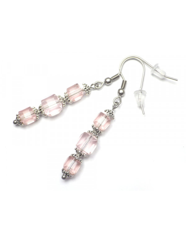 Rosa Ohrringe aus Glas und Edelstahl