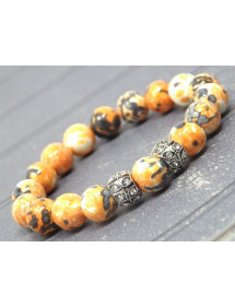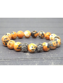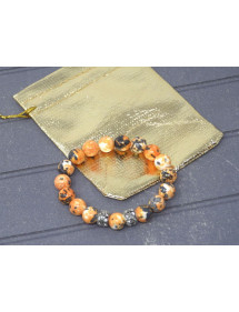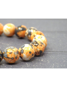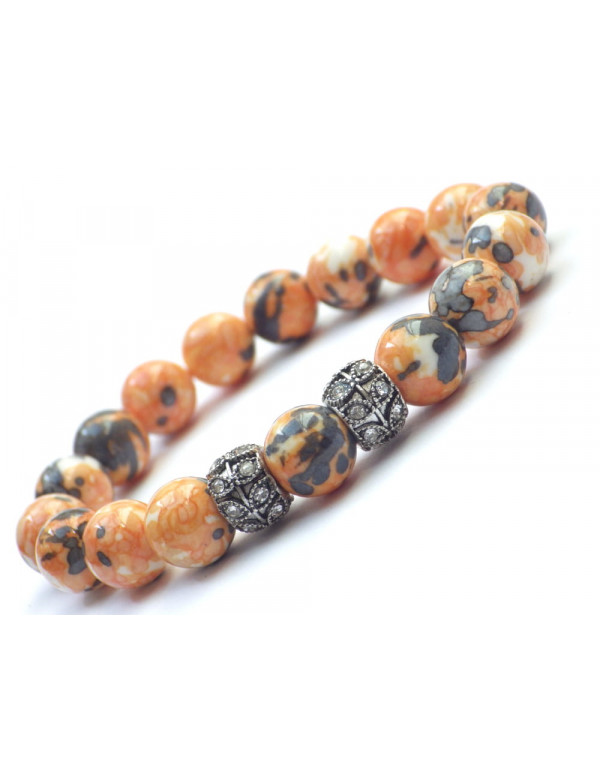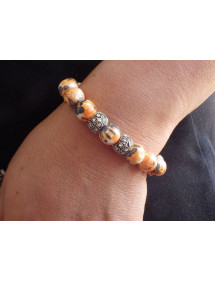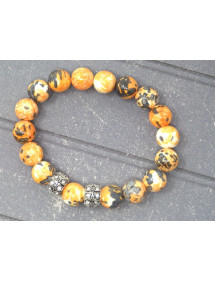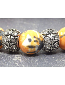 Damenarmband aus orange und schwarz rekonstituierten Jade-Perlen und zentralen Perlen mit Kristallen
