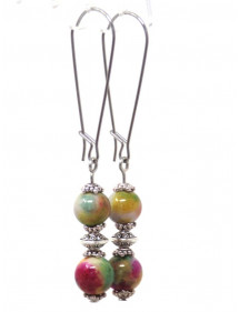 Vintage-Stil Ohrringe in roter, grüner und weißer natürlicher Jade auf ausgefallenen Edelstahl Creolen montiert