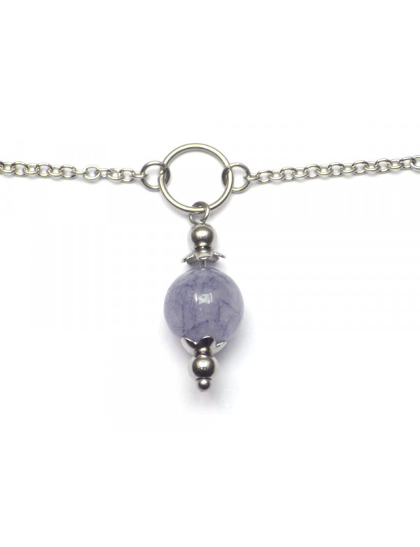 Edelstahl Knöchelkette für Frauen mit Anhänger aus blauen Quarzperlen