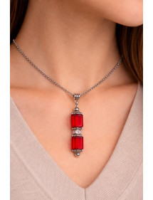 Edelstahlkette für Frauen mit rotem Glasanhänger und Strasssteinen