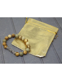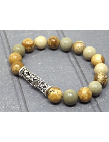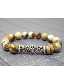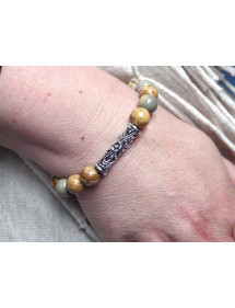 Damenarmband mit filigraner zentraler tibetischer Perle und braunen Jaspisperlen