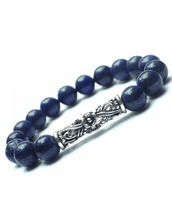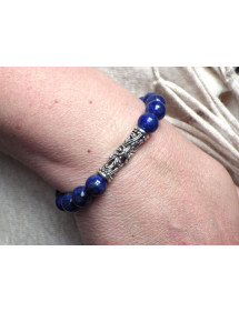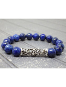 Dieses prächtige Thurcolas-Armband wurde mit Leidenschaft in unseren Werkstätten in Frankreich hergestellt und besteht aus 10-mm-Perlen aus Lapislazuli (Halbedelstein). Die Baugruppe ist auf einem elastischen Draht mit einer zentralen tibetischen filigranen Perle montiert. - Stil: böhmisch, ethnisch, klassisch schick - Länge: 19 cm - Perlen: 10 mm - Materialien: Lapislazuli, versilbertes Messing - Farbe: weiß - Metallfarbe: Antiksilber, Stahl Dieses Juwel besteht aus Lapislazuli-Perlen (Halbedelstein), wobei Lapislazuli ein Naturstein ist. Es kann geringfügige Unterschiede zur Fotografie geben. Das Ganze ist auf einem elastischen Faden mit einer filigranen Mittelperle montiert. Dieses Juwel wird mit einem hervorragenden Geschenkbeutel aus goldenem Textil geliefert.