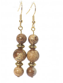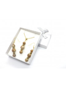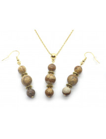 Schmuckset mit Halskette und Ohrringen aus goldfarbenem Edelstahl im schicken Stil in braunem Jaspis