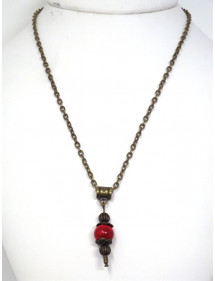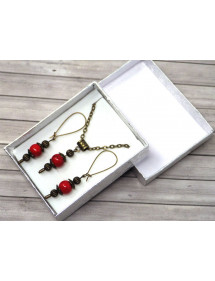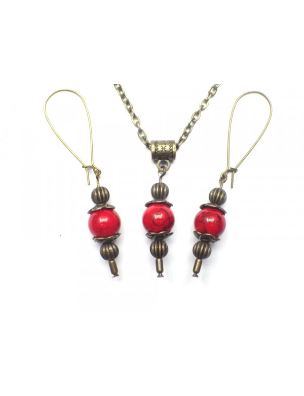 Vintage-Stil Halskette und Ohrringe Schmuck Set für Frauen in rot rekonstituierten Türkis