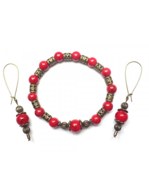 Armband und Ohrringe im Vintage-Stil für Frauen in rotem, rekonstituiertem Türkis