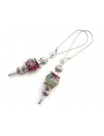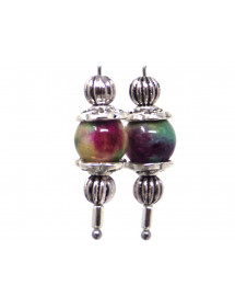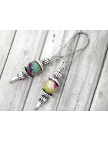 Thurcolas-Ohrringe im Vintage-Stil aus grün und braun getönter Jade auf schicken Edelstahlbügeln