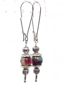 Schöne Vintage Edelstahl Ohrringe. Diese handgefertigten Ohrringe werden mit Sorgfalt hergestellt und bestehen aus weißer Jade, die in Grün (Halbedelstein), Silbermetall und Edelstahl getönt ist. Alles ist auf ausgefallenen Edelstahlreifen montiert. Stil: Böhmen, Vintage Haken: Dormeuse, Reifen Höhe: 60 mm Perlen: Weiße Jade grün getönt (Halbedelstein) Materialien: Weiße Jade grün getönt (Halbedelstein) Silbermetall und Edelstahl Farbe: Grün Metallfarbe: Stahl, Silber