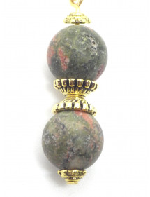 Pendientes de cuentas de Unakita verde y cuentas tibetanas doradas