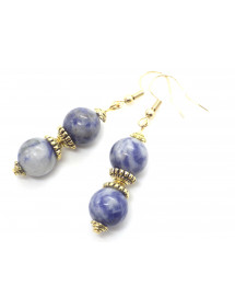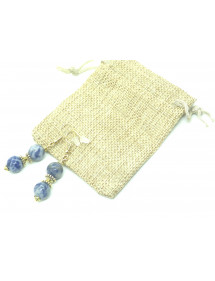 Pendientes de cuentas de jaspe azul y cuentas tibetanas doradas