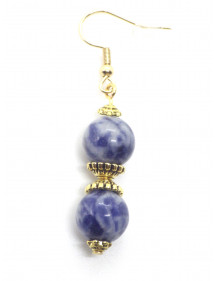 Magnífica creación artesanal presentada por ThurColas Creation, se trata de unos pendientes elaborados con perlas naturales de jaspe azul (piedra semipreciosa) adornados con perlas tibetanas y copas de metal dorado. Todo está montado sobre ganchos franceses de acero inoxidable bañados en oro. Estilo: Clásico, chic, Étnico, Bohemio Gancho: Francés Alto: 50 mm Cuentas: 10 mm Materiales: jaspe azul (piedra semipreciosa), acero inoxidable, metal dorado Color: azul Color del metal: Dorado