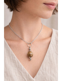 Magnífica creación artesanal presentada por ThurColas Creation, se trata de un collar de latón antiguo de color bronce con un colgante elaborado con cuentas de cuarzo azul natural (piedra semipreciosa) adornado con cuentas tibetanas y copas de bronce antiguo. Estilo: Clásico, chic, Étnico, Bohemio Altura del colgante: 50 mm Longitud del collar: 45 cm Cuentas: 10 mm Materiales: Cuarzo azul (piedra semipreciosa), latón, bronce antiguo Color: azul Color del metal: Bronce antiguo