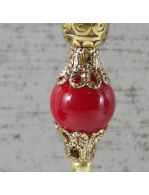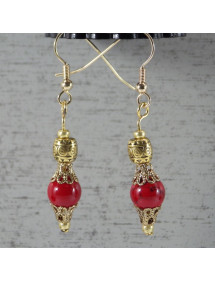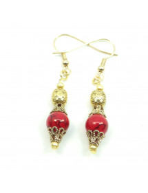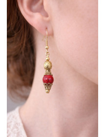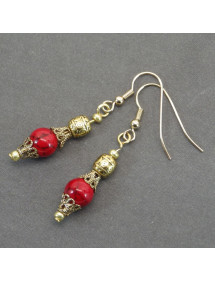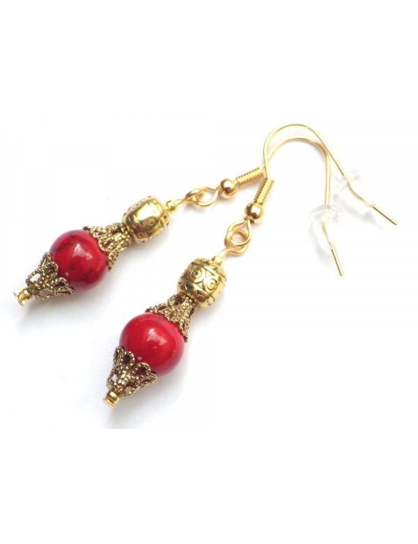 Pendientes Thurcolas en cuentas de turquesa roja reconstituidas y copas de filigrana de color dorado antiguo