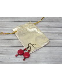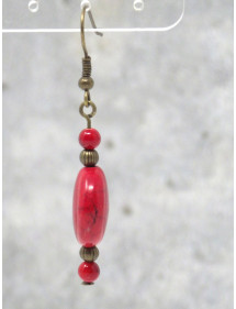 Pendientes estilo Zen rojos en bronce antiguo y cuentas planas en turquesa reconstituida roja