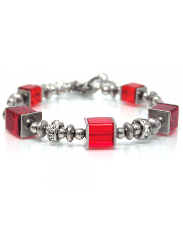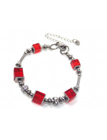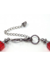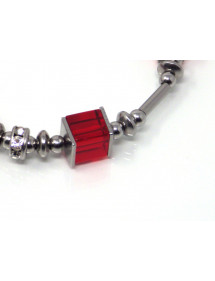 Hermosa pulsera de estilo clásico rojo para mujer elegante. Esta preciosa joya está hecha con cuentas cuadradas de vidrio rojo, todas las partes metálicas están hechas de acero inoxidable, el conjunto está montado sobre un alambre de acero inoxidable rígido y muy sólido. El color dominante de la pulsera es el rojo. Esta joya está adornada con hermosas cuentas de acero y diamantes de imitación, las cuentas de vidrio son de 6 y 8 mm. La pulsera mide 60 mm de diámetro y tiene una cadena de acero inoxidable para ajustarse a una muñeca más grande. Thurcolas es un taller creativo francés especializado en la fabricación artesanal de joyas. Todas nuestras joyas, pulseras, pendientes, collares y tobilleras están hechos a mano en Francia con materiales de calidad.