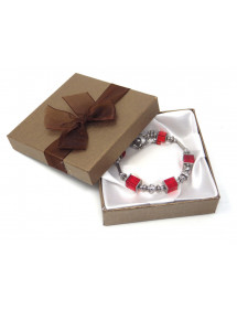 Hermosa pulsera de estilo clásico rojo para mujer elegante. Esta preciosa joya está hecha con cuentas cuadradas de vidrio rojo, todas las partes metálicas están hechas de acero inoxidable, el conjunto está montado sobre un alambre de acero inoxidable rígido y muy sólido. El color dominante de la pulsera es el rojo. Esta joya está adornada con hermosas cuentas de acero y diamantes de imitación, las cuentas de vidrio son de 6 y 8 mm. La pulsera mide 60 mm de diámetro y tiene una cadena de acero inoxidable para ajustarse a una muñeca más grande. Thurcolas es un taller creativo francés especializado en la fabricación artesanal de joyas. Todas nuestras joyas, pulseras, pendientes, collares y tobilleras están hechos a mano en Francia con materiales de calidad. Esta pulsera está hecha con materiales de calidad, todas las partes metálicas son de acero inoxidable. El conjunto se monta a mano sobre un alambre de acero. Los materiales utilizados son: Vidrio: este es un vidrio de calidad, muy brillante con reflejos cristalinos. Acero inoxidable: es una aleación de acero con una gran resistencia que no se deteriora ni se oxida. Cuentas de acero inoxidable engastadas con pedrería. Esta joyería viene con una caja de regalo.