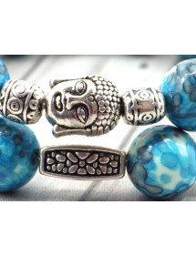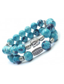 Esta magnífica pulsera de mujer de estilo étnico fue hecha a mano en nuestro taller en Francia. Elaborado con mimo se compone de jade blanco reconstituido teñido de azul morado y blanco y cuentas tibetanas plateadas. La cabeza de Buda le da un aire zen y antiguo a esta joya imprescindible para las vacaciones y la playa. Estilo: Bohemio Vintage Étnico Longitud: 190 mm Cuentas: 10 mm Materiales: Jade blanco reconstituido teñido en azul morado y blanco Metal plateado Color: azul morado blanco Color del metal: Plata