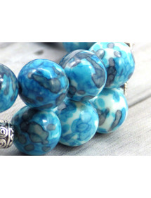 Esta magnífica pulsera de mujer de estilo étnico fue hecha a mano en nuestro taller en Francia. Elaborado con mimo se compone de jade blanco reconstituido teñido de azul morado y blanco y cuentas tibetanas plateadas. La cabeza de Buda le da un aire zen y antiguo a esta joya imprescindible para las vacaciones y la playa. Estilo: Bohemio Vintage Étnico Longitud: 190 mm Cuentas: 10 mm Materiales: Jade blanco reconstituido teñido en azul morado y blanco Metal plateado Color: azul morado blanco Color del metal: Plata Nuestras cuentas están hechas de jade blanco reconstituido teñido de azul y morado y ensambladas sobre un hilo elástico de calidad. El proceso de teñido de la piedra es aleatorio puede haber ligeras diferencias con el modelo presentado por lo tanto cada modelo es único. Esta joya viene con una bolsa de regalo de color dorado gratuita.