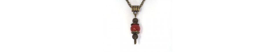 15,67 €Magnífica creación artesanal presentada por ThurColas Creation, se trata de un collar de latón antiguo de color bronce con un colgante elaborado con perlas naturales de Cornalina roja (piedra semipreciosa) adornado con perlas tibetanas y copas de bronce antiguo. Estilo: Clásico, chic, Étnico, Bohemio Altura del colgante: 50 mm Longitud del collar: 45 cm Cuentas: 10 mm Materiales: Cornalina roja (piedra semipreciosa), latón, bronce antiguo Color: rojo Color del metal: Bronce antiguo