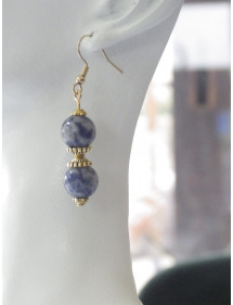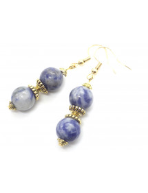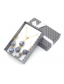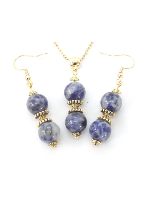 Magnífica creación artesanal presentada por ThurColas Creation, se trata de un conjunto de joyería compuesto por aretes y collar de acero inoxidable con colgantes de perlas naturales de jaspe azul (piedra semipreciosa) adornados con perlas tibetanas y copas de metal dorado. Estilo: Clásico, chic, Étnico, Bohemio Altura del colgante: 50 mm Largo del collar: 45 cm Alto Pendientes: 50 mm Ganchos: Francés Cuentas: 10 mm Materiales: jaspe azul (piedra semipreciosa), acero inoxidable bañado en oro, metal dorado Color: azul Color del metal: Oro, oro