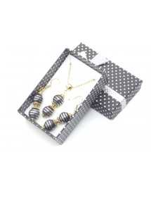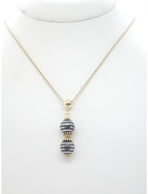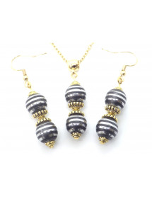Magnífica creación artesanal presentada por ThurColas Creation, se trata de un conjunto de joyería compuesto por aretes y collar de acero inoxidable con colgantes de perlas naturales en Hematita negra y cromo (piedra semipreciosa) adornados con cuentas tibetanas y copas de metal dorado. Estilo: Clásico, chic, Étnico, Bohemio Altura del colgante: 50 mm Largo del collar: 45 cm Alto Pendientes: 50 mm Ganchos: Francés Cuentas: 10 mm Materiales: Hematita negra y cromo (piedra semipreciosa), acero inoxidable chapado en oro, metal dorado Color: negro Color del metal: Oro, oro