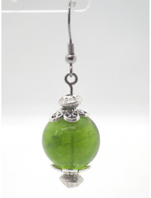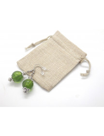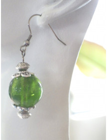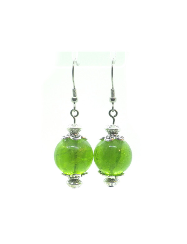 Pendientes artesanales de vidrio lampwork verde y latón plateado, estilo vintage, artesanía francesa