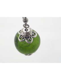 Estos elegantes pendientes hechos a mano añadirán un toque de sofisticación a tu atuendo. Su estilo vintage, realzado por una cuenta de vidrio verde de técnica lampwork que rodea una hoja de plata, los hace ideales para una ocasión especial o para aportar un toque chic a tu vestimenta diaria. Cada pendiente cuenta con ganchos de acero inoxidable, combinados con cuentas y varillas de latón plateado para un diseño armonioso y atemporal. Perfectamente equilibrados con una altura total de 50 mm y un colgante de 35 mm, estos pendientes ligeros y cómodos están diseñados para ser tanto elegantes como fáciles de llevar. Este joyero es el fruto de un savoir-faire artesanal francés. Hecho completamente a mano en mi taller, refleja la atención a los detalles y la pasión por la creación de piezas únicas y elegantes. Una verdadera garantía de calidad y autenticidad. Altura total: 50 mm Altura del colgante: 35 mm Perla: Perla de vidrio lampwork de 18 mm con hoja de plata Ganchos: Acero inoxidable Piezas metálicas: Latón plateado Fabricación artesanal francesa