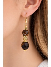 Estos elegantes pendientes hechos a mano añadirán un toque de sofisticación a tu atuendo. Su estilo vintage, realzado por una cuenta de vidrio dorado de técnica lampwork que rodea una hoja de plata, los hace ideales para una ocasión especial o para aportar un toque chic a tu vestimenta diaria. Cada pendiente cuenta con ganchos de latón, combinados con cuentas y varillas de latón bronce antiguo para un diseño armonioso y atemporal. Perfectamente equilibrados con una altura total de 50 mm y un colgante de 35 mm, estos pendientes ligeros y cómodos están diseñados para ser tanto elegantes como fáciles de llevar. Este joyero es el fruto de una técnica artesanal francesa. Completamente hecho a mano en mi taller, refleja la atención a los detalles y la pasión por la creación de piezas únicas y elegantes. Un verdadero símbolo de calidad y autenticidad. Altura total: 50 mm Altura del colgante: 35 mm Perla: Vidrio esmaltado y nacarado de 14 mm con hoja de plata Ganchos: Acero inoxidable bañado en oro Varillas y perlas metálicas: Latón dorado Fabricación artesanal francesa