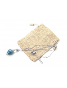 Este elegante collar artesanal añadirá un toque de refinamiento a tu atuendo. Su estilo vintage, realzado por una cuenta de vidrio esmaltado y nacarado azul turquesa que rodea una hoja de plata, lo hace ideal para una ocasión especial o para agregar un toque chic a tu día a día. Este collar y su cierre están hechos de acero inoxidable, combinados con cuentas y varillas de latón plateado, para un diseño armonioso y atemporal. Perfectamente equilibrado con una cadena de 45 cm y un colgante de 35 mm, estos pendientes ligeros y cómodos están diseñados para ser elegantes y fáciles de usar.