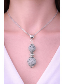 18,27 $Magnífica creación artesanal presentada por ThurColas Creation, se trata de un collar de acero inoxidable con un colgante elaborado con cuentas de piedra de lava gris natural (piedra semipreciosa) adornado con cuentas tibetanas y copas de metal plateado. Estilo: Clásico, chic, étnico, bohemio Altura del colgante: 50 mm Longitud del collar: 45 cm Cuentas: 10 mm Materiales: piedra de lava gris (piedra semipreciosa), acero inoxidable, metal plateado Color: gris Color del metal: Plata, acero