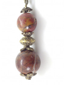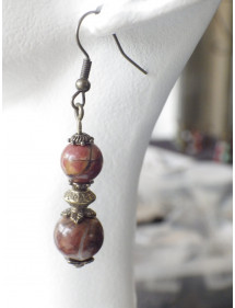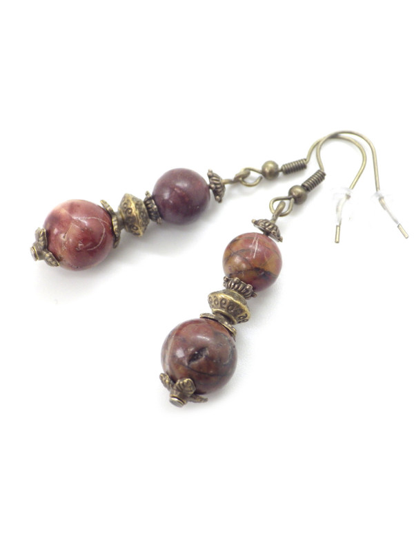 Estilo: Clásico, chic, Étnico, Bohemio Ganchillo: Francés Altura: 50 mm Cuentas: 10 mm y 8 mm Materiales: jaspe Picasso marrón (piedra semipreciosa), latón, bronce antiguo Color: marrón Color del metal: bronce