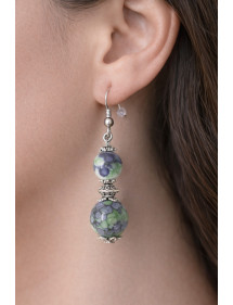 Muy hermosa creación artesanal presentada por ThurColas Création, estos son aretes de acero inoxidable hechos de cuentas de jade blanco natural teñidas de verde y negro (piedra semipreciosa) adornadas con cuentas tibetanas y cuentas de latón plateado. Todo está montado sobre ganchos franceses de acero inoxidable. Perfectamente equilibrados con una altura total de 50 mm y un colgante de 35 mm, estos pendientes ligeros y cómodos están diseñados para ser elegantes y fáciles de llevar. Estilo: Clásico, elegante, étnico, bohemio Gancho: francés Altura: 50 mm Cuentas: 10 mm y 8 mm Materiales: jade blanco teñido de negro y verde (piedra semipreciosa), latón, acero inoxidable Color: negro, verde Color del metal: acero, plata