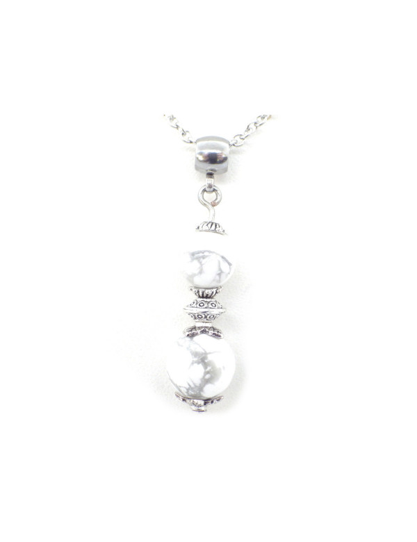Collar de acero inoxidable para mujer con colgante de howlita blancas y de latón plateado