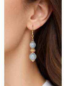 Muy hermosa creación artesanal presentada por ThurColas Creation, estos son aretes de acero inoxidable chapados en oro hechos de cuentas de cuarzo azul natural (piedra semipreciosa) adornadas con cuentas tibetanas y cuentas de latón dorado. Todo está montado sobre ganchos franceses de acero inoxidable chapados en oro. Perfectamente equilibrados con una altura total de 50 mm y un colgante de 35 mm, estos pendientes ligeros y cómodos están diseñados para ser elegantes y fáciles de llevar. Estilo: Clásico, elegante, étnico, bohemio Gancho: francés Altura: 50 mm Cuentas: 10 mm y 8 mm Materiales: Cuarzo azul (piedra semipreciosa), latón, acero inoxidable Color: azul Color del metal: oro, oro