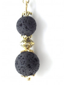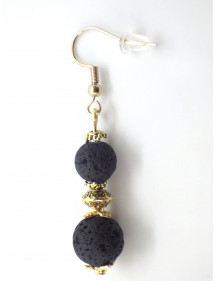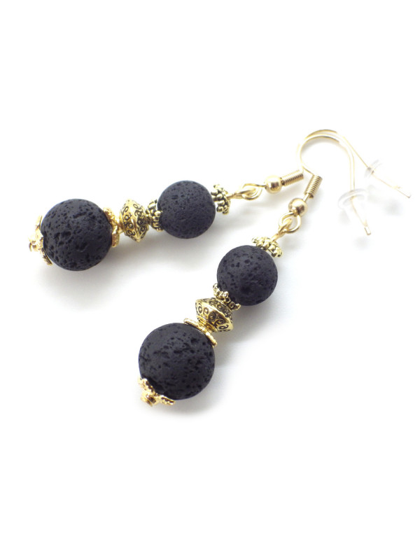 Estilo: Clásico, elegante, étnico, bohemio Gancho: francés Altura: 50 mm Cuentas: 10 mm y 8 mm Materiales: piedra de lava negra (piedra semipreciosa), latón, acero inoxidable Color: negro Color del metal: oro, oro