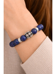 Pulsera de mujer en cuentas de lapislázuli azul y cuenta central con cristales