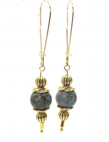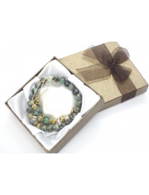 Precioso conjunto de pulsera, collar y pendientes Vintage en acero inoxidable con baño de oro y metal con baño de oro. Este conjunto de joyería compuesto por una pulsera, un collar y un par de aretes criollos está hecho a mano con mimo y compuesto de turquesa natural (piedra semipreciosa) acero inoxidable chapado en oro y metal dorado. Todo va montado sobre un elástico resistente de calidad así como una cadena y unos pendientes de aro en acero inoxidable con baño de oro. Estilo: Bohemia, Vintage Broche: pinza de langosta Longitud del collar: 45 cm Longitud de la pulsera: 19 cm Altura del arete: 70 mm Cuentas: turquesa natural (piedra semipreciosa) Materiales: acero inoxidable dorado, metal dorado Color: verde Metal color: oro, dorado Nuestras perlas son en turquesa natural (piedra semipreciosa), tintadas y montadas en cadena y aros en acero inoxidable bañado en oro y metal bañado en oro, siendo la turquesa una perla natural, cada perla es única en color por lo que puede haber Variaciones Ligeras diferencias con el modelo presentado, cada modelo es único. Esta joya viene con una caja de regalo.