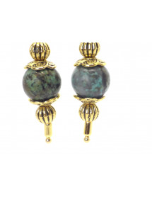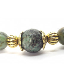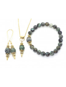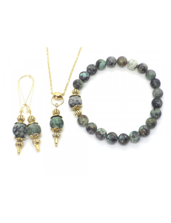 Conjunto de bisutería para mujer estilo vintage de pulsera, collar y pendientes en turquesa verde natural y metal dorado