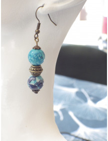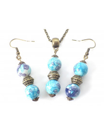 Descubra la auténtica elegancia de este conjunto de joyas artesanales de ThurColas Création. Este refinado conjunto incluye un collar y un par de pendientes de bronce, realzados por auténticas cuentas de jade blanco natural teñidas de azul y morado, una piedra semipreciosa con delicados reflejos que combinan suavidad azulada y profundidad violeta, símbolo de equilibrio, sabiduría interior y creatividad. Los pendientes, con una altura ideal de 50 mm, ofrecen ligereza y comodidad para un uso cómodo durante todo el día. Su diseño armonioso combina cuentas de jade teñidas, cuentas tibetanas y cuentas de bronce, para un look que es a la vez elegante, étnico y bohemio. El collar, con su cadena de latón bronce antiguo de 45 cm, está adornado con un colgante de 35 mm hecho de cuentas de jade blanco teñidas de azul y púrpura y elementos de bronce ornamentados. Su cierre de langosta garantiza un cierre seguro y práctico. Perfecto para realzar todos tus atuendos, este conjunto es imprescindible para aquellos que buscan un estilo clásico y moderno a la vez, con un toque de autenticidad. Características principales: Estilo: Clásico, Chic, Étnico, Bohemio. Altura del colgante: 35 mm. Longitud del collar: 45 cm. Altura de los pendientes: 50 mm. Ganchos: Gancho francés. Tamaño del cordón: 10 mm. Materiales: Jade blanco teñido de azul y morado (piedra semipreciosa), bronce envejecido. Color: Azul y morado para las perlas, bronce para el metal. Date un capricho con una joya artesanal única, que combina la belleza natural y el saber hacer tradicional, para brillar con elegancia en el día a día.
