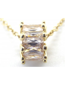 Este collar contemporáneo presenta un colgante cilíndrico de 11 mm x 6,5 mm con circonitas talla baguette que reflejan intensamente la luz. Su cadena de acero inoxidable chapada en oro de 45 cm, con una extensión de 5 cm, permite un ajuste preciso para adaptarse a cualquier escote. Elaborada artesanalmente en nuestro taller de Anjou, esta pieza combina modernidad y elegancia para realzar tus looks de diario y de noche.