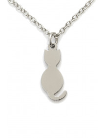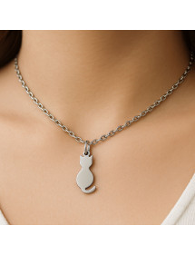 Collar de acero inoxidable con forma de gato sentado - Elegante colgante felino de 40+5 cm