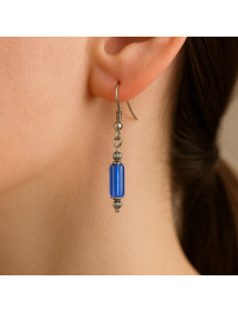 Estos pendientes artesanales cautivan con el intenso brillo de su cristal azul, que captura la luz con refinamiento. Su diseño estilizado realza la delicadeza de tu rostro y añade un toque de personalidad a tu estilo. Cada colgante cilíndrico se elabora cuidadosamente a mano en nuestro taller de Anjou, con finas cuentas de latón bañado en plata. Los ganchos y pasadores de acero inoxidable garantizan comodidad y durabilidad, a la vez que garantizan una excelente compatibilidad con la piel. Estos pendientes son perfectos para realzar un atuendo elegante, romántico o bohemio. Su tono azul translúcido evoca pasión y energía, creando una joya tan atemporal como vibrante. Cada par se presenta en una bonita bolsa natural, lista para regalar o para darse un capricho.
