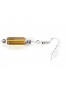 Materiales: Colgante de cristal marrón claro, cuentas de latón plateado, ganchos y poste de acero inoxidable.