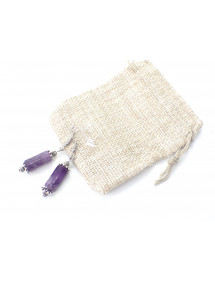 Estos pendientes de amatista natural cautivan con su intenso resplandor púrpura y su elegancia atemporal. Piedra de sabiduría y serenidad, la amatista es conocida por calmar la mente, promover la claridad mental y favorecer la meditación. Su color, símbolo de calma y equilibrio, combina a la perfección con atuendos tanto sobrios como sofisticados. Cada colgante cilíndrico de 30 mm está tallado a partir de una amatista natural cuidadosamente seleccionada por su tono armonioso y transparencia. Las cuentas y fornituras de latón bañado en plata, delicadamente elaboradas, realzan la nobleza de la piedra. Los ganchos y pasadores de acero inoxidable garantizan comodidad, resistencia y tolerancia cutánea. Estos pendientes, elaborados artesanalmente en nuestro taller de Anjou, encarnan la combinación de elegancia, energía positiva y maestría francesa. Se presentan en una bolsita natural, listos para regalar o para darse un capricho. Materiales: Colgante de amatista natural, cuentas y fornituras de latón plateado, ganchos y pasadores de acero inoxidable. Altura total: 50 mm Altura del colgante: 30 mm Origen de la piedra: Brasil y Uruguay, yacimientos reconocidos por la calidad y pureza de su amatista. Hecho a mano en Francia, en nuestro taller de Anjou.