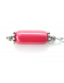 Materiales: Colgante de cuentas de porcelana roja, cuentas y fornituras de latón plateado, ganchos y pasadores de acero inoxidable.