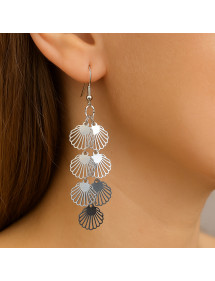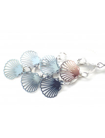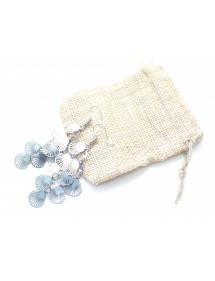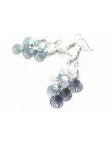 Estos delicados pendientes juegan con el brillo del metal y la suavidad de los tonos marinos. Sus estilizados motivos de conchas evocan el mar y la luz, en un armonioso tono plateado sutilmente matizado con azul acero.