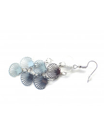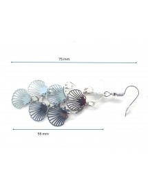 Pendientes estilizados de plata y concha azul en acero inoxidable
