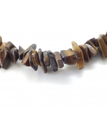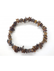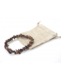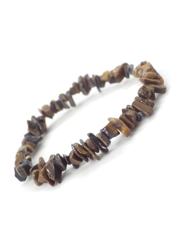 Esta pulsera está hecha con fragmentos pulidos de ojo de tigre natural, ensartados en un resistente cordón elástico.